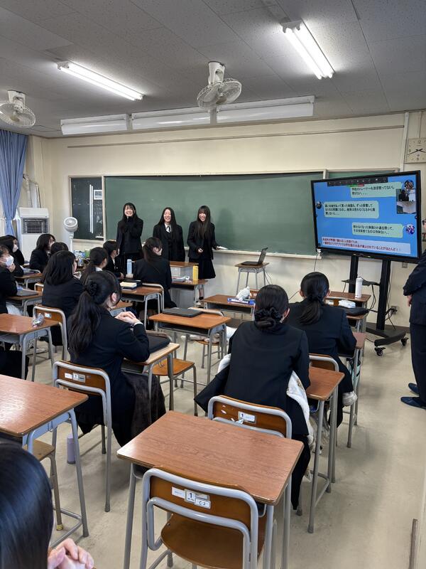 2025年12月16日(火)6校時の総合的な探究の時間は、1・2年合同授業を行いました。自身の探究課題を設定する段階にある1年生に向けて、2年生が1年かけて探究してきた自身の取り組みを発表しました。