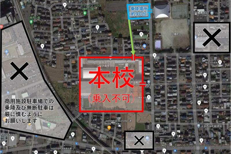 なお、送迎の際の自動車につきましては、本校北側の借地駐車場に乗降場所を用意しました。