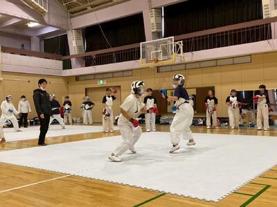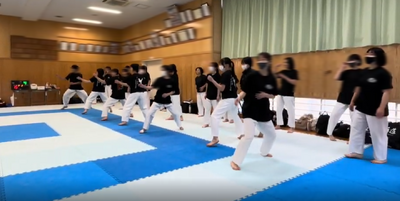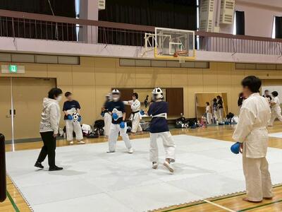 本校にお迎えし、形と組手の練習、最後には試合形式のメニューに取り組みました。中学生の皆さんのエネルギッシュな姿勢に、私たちも大きな刺激を受けました。来校いただきありがとうございました!