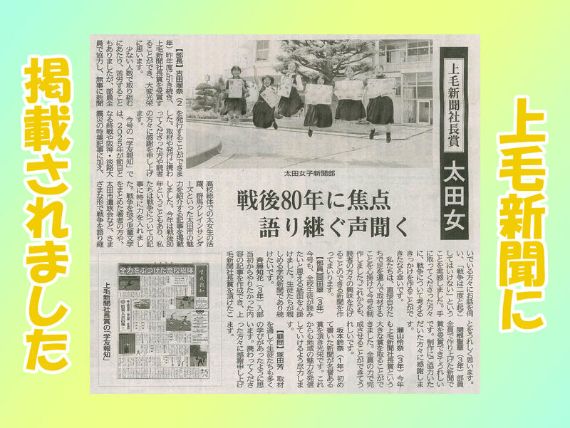 これからも太田女子高校新聞部をよろしくお願いします。