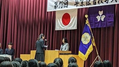 卒業式に先立ち、令和7年2月28日(金)午後、母校体育館にて、同窓会みどり会入会式を挙行いたしました。