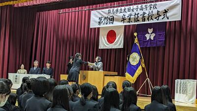 式は高橋校長先生の祝辞の後、記念品を代表の氏家捺妃さんに贈呈しました。